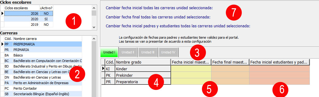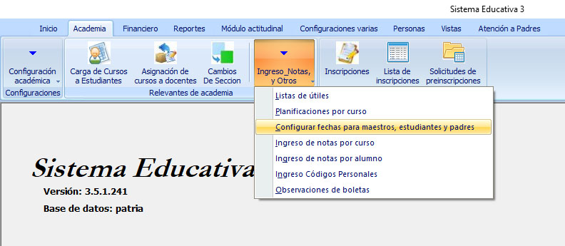 El software Educativa 3.5 tiene el espacio para que se pueda configurar las fechas de forma fácil a través de su interfaz gráfica